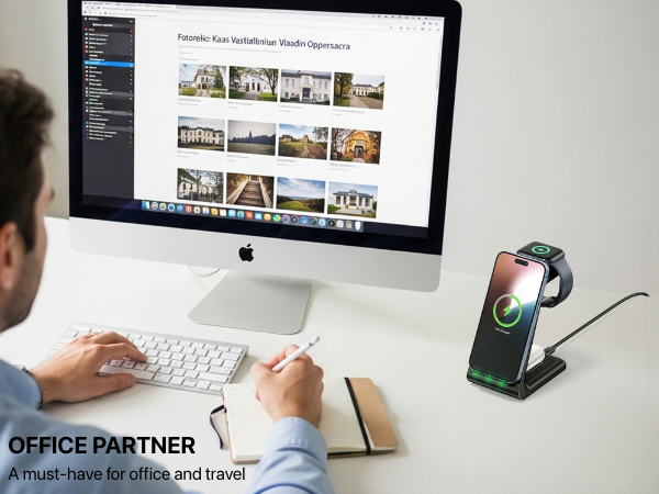 About this item𝐆𝐚𝐦𝐞 𝐂𝐡𝐚𝐧𝐠𝐞𝐫: Simplify your charging routine with this wireless charging station designed for Apple devices. Charge your phone, Apple Watch, and earbuds simultaneously, eliminating cable clutter and enhancing your daily charging experience.𝐑𝐞𝐥𝐢𝐚𝐛𝐥𝐞 𝐜𝐡𝐨𝐢𝐜𝐞: Get faster and more reliable charging with this advanced stand. It delivers up to 18W total output, 7.5W for iPhone, 10W (max) for Samsung/Android, 5W (max) for Airbuds/earbuds, and 2.5W (max) for Apple Watch.𝐔𝐧𝐢𝐯𝐞𝐫𝐬𝐚𝐥 𝐂𝐨𝐦𝐩𝐚𝐭𝐢𝐛𝐢𝐥𝐢𝐭𝐲: The charging station is universally compatible with iPhone 15 Pro Max to 8 series, Airpods above 2 gen, and other Qi-certified devices including Samsung, LG, Pixel, Motorola, etc. Note that the watch part is only for Apple Watch with a dedicated spot for your watch while charging other devices.𝐁𝐮𝐢𝐥𝐝 𝐭𝐨 𝐋𝐚𝐬𝐭: The wireless charging station is crafted with aluminum alloy materials and tested over 1000 times to ensure durability and high-quality performance. Trust in the exceptional value and reliability of our Apple device charger.𝐌𝐢𝐧𝐝-𝐛𝐥𝐨𝐰𝐢𝐧𝐠 𝐒𝐭𝐚𝐧𝐝: Elevate your charging setup with our sleek and space-efficient charging station. Its elegant metal exterior seamlessly blends with any decor, adding sophistication to your space and complementing the sleek aesthetics of your Apple devices. It's an excellent gift choice and perfect for your desk, nightstand, or office.