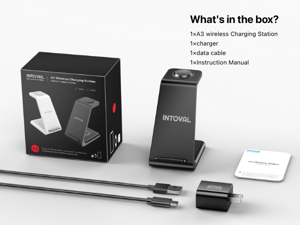 Intoval 3 in 1 Wireless Charging Station for iPhone and Apple Watch,Fast Wireless Charger Stand (A3,Black)